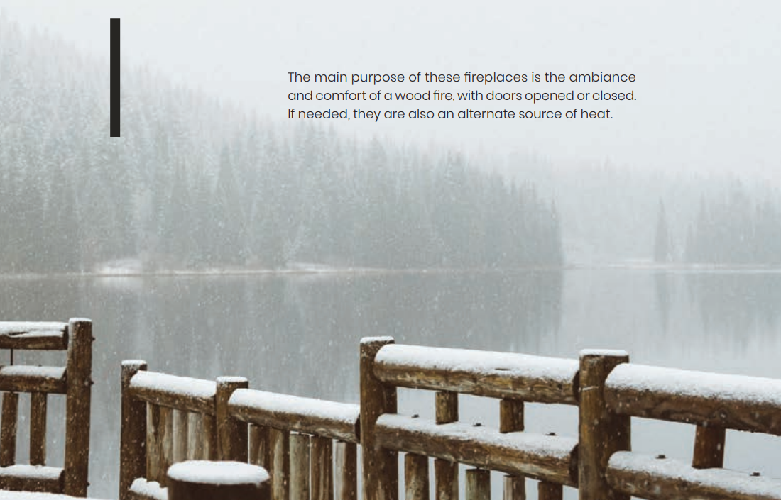 The standout feature of this wood fireplace is its ingenious guillotine-style door and spark guard system. Crafted with exceptional attention to detail and premium materials, this mechanism allows for smooth and effortless operation. The door and firescreen, equipped with a removable handle, discreetly slide under the hearth, providing easy and secure access to fuel the fire.