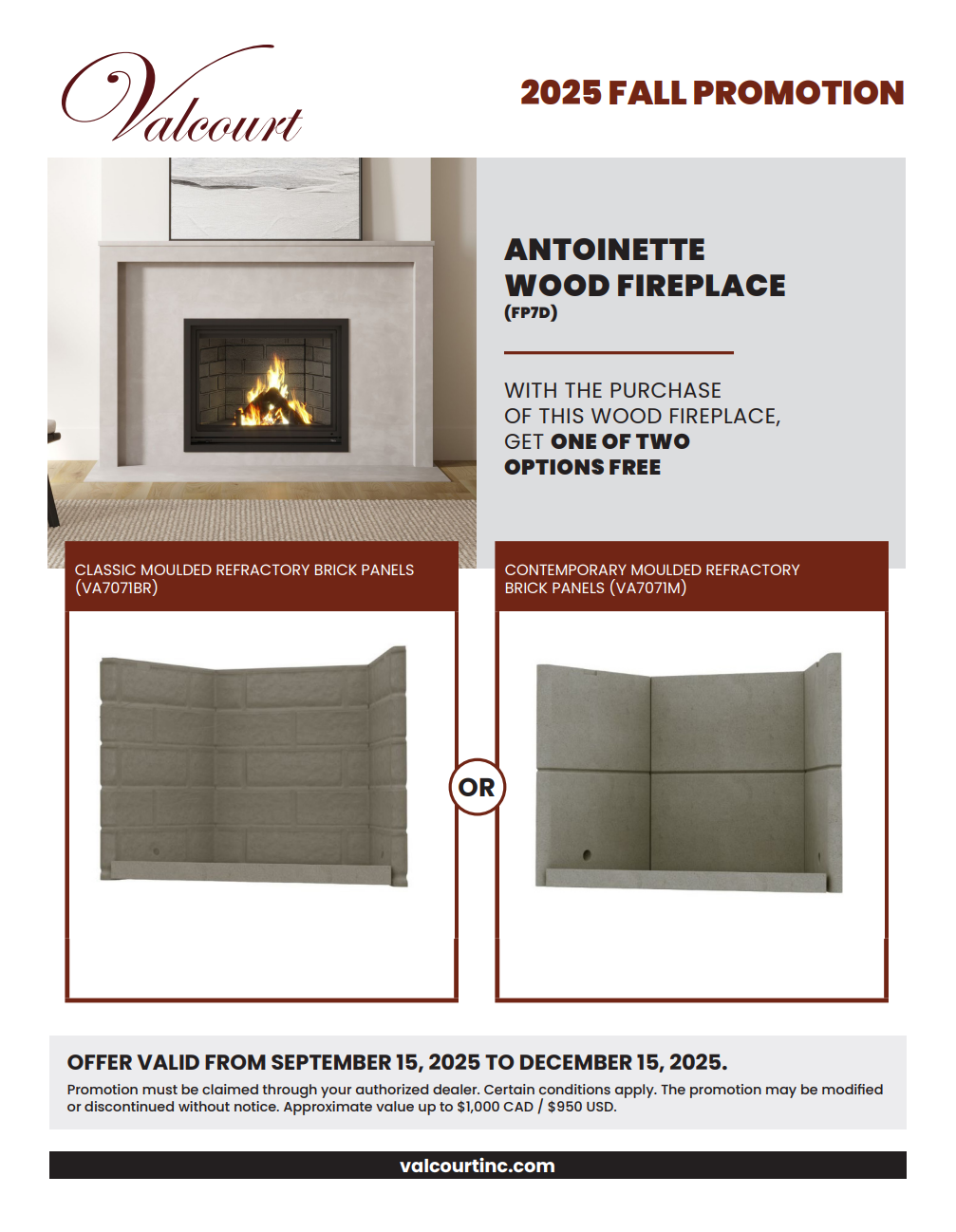 It was in 1992 that Valcourt discovered its true vocation and manufactured its first wood fireplace: the Manoir. Just as popular with consumers as with industry experts, this model has been replicated by multiple manufacturers without ever being matched. A few years later, Valcourt innovated again with its legendary guillotine fireplace, called Antoinette. Very first guillotine fireplace on the market, this model is the pioneer of this type and was a major success. Over the years, the fireplace industry has undergone many changes in environmental standards that have imposed increasingly severe restrictions. Living up to its previous successes, Valcourt has brilliantly met these new challenges and launched in 2015 the largest fireplace on the market that meets the EPA requirements.
