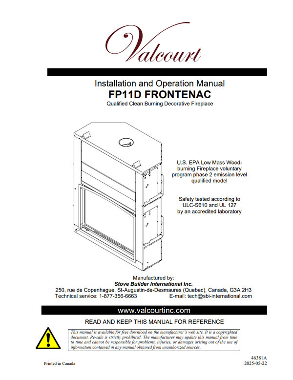 | Type of chimney | CAN/ULC S629, UL 103 HT (2100 °F) |