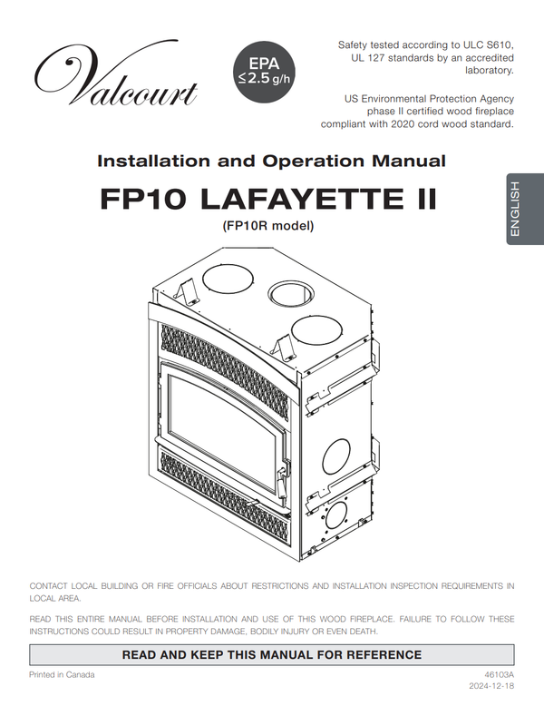 | Type of chimney | CAN/ULC S629, UL 103 HT (2100 °F) |