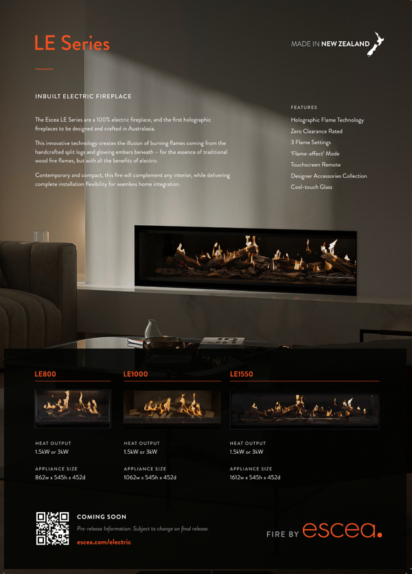 Designed and crafted in New Zealand, Escea electric fireplaces capture the essence of traditional wood fire flames, with all the benefits of electric.