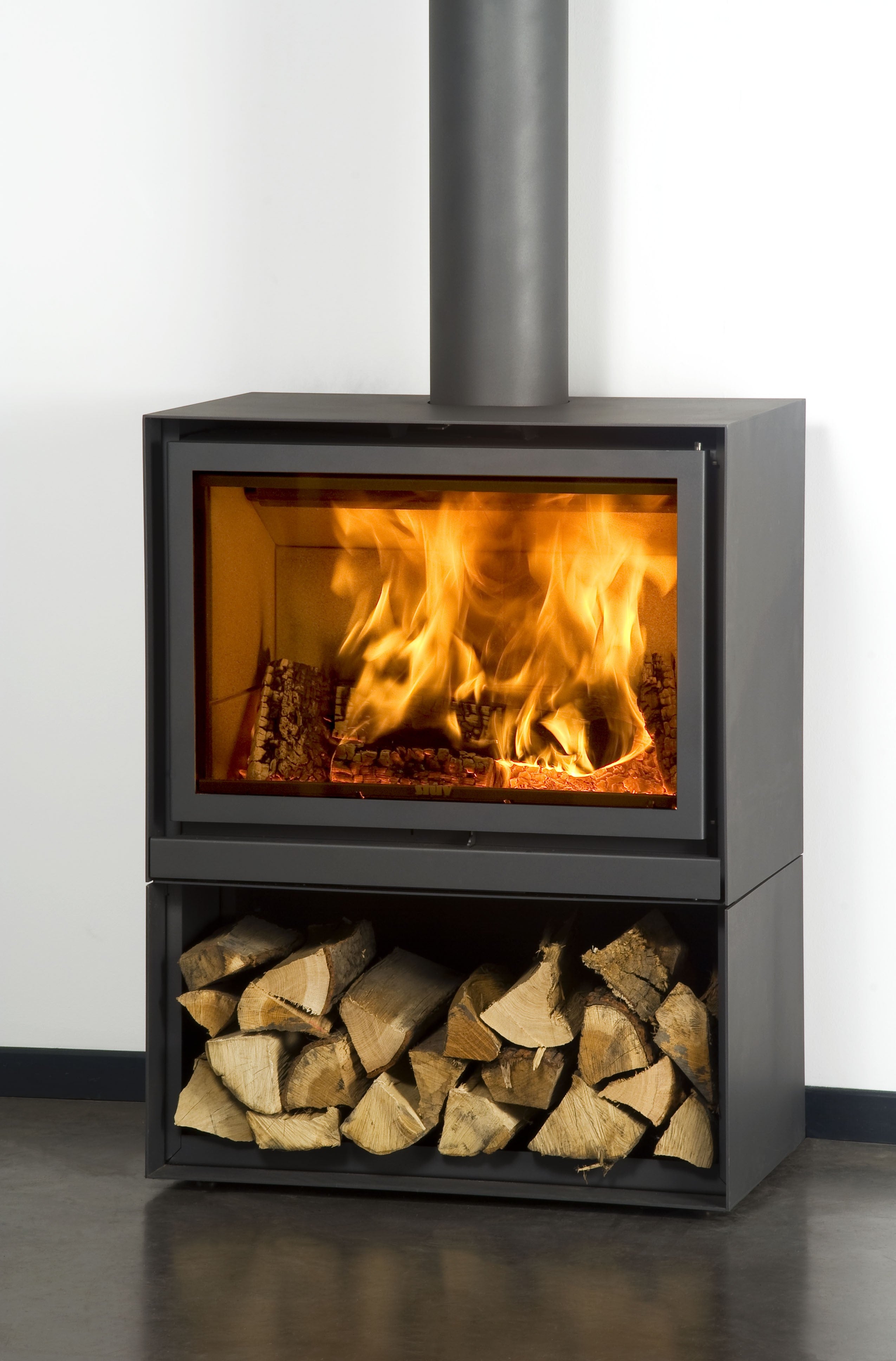 Stûv 16 showcase the spectacle of flames through their refined design. These types of modern wood stoves have a large opening that abundantly distributes heat.