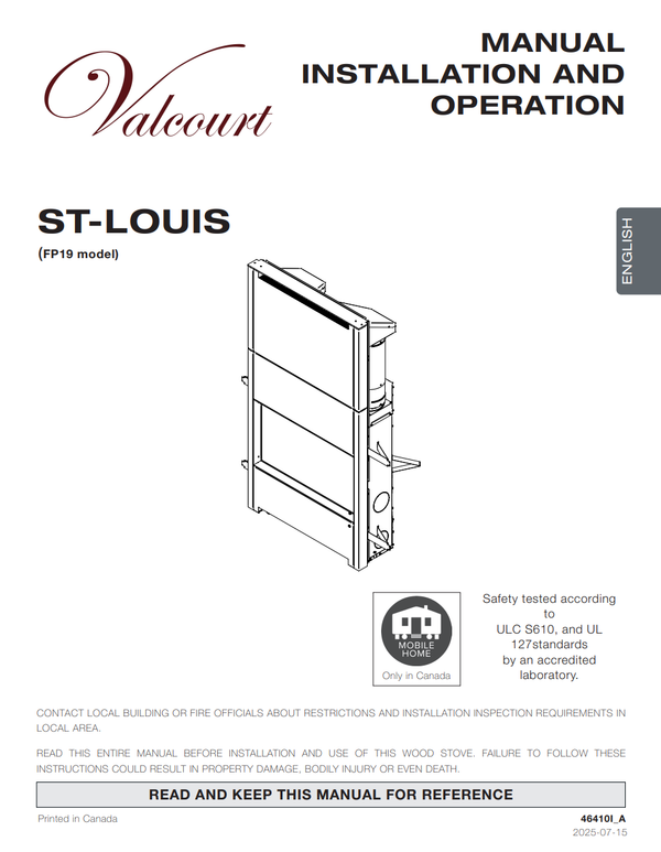 | Type of chimney | CAN/ULC S604, UL 103 (1700 °F) - CAN/ULC S629, UL 103 HT (2100 °F) |